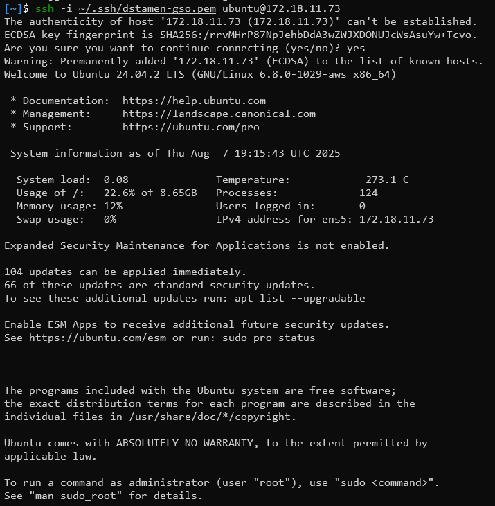 You can now ssh into your instance using the key pair you provided during the deployment.