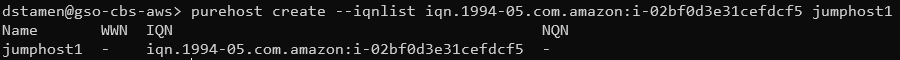 Next, we will need to create the host object on our Pure Cloud Block Store. You can use the UI or CLI for this task, for simplicity we will do these tasks via the CLI.