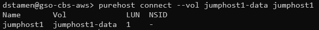 3purehost connect --lun 1 --vol ubuntu1-boot ubuntu1