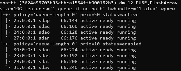Since the volume size was 10GB, lets look for this in the output. In this case it is mpathf