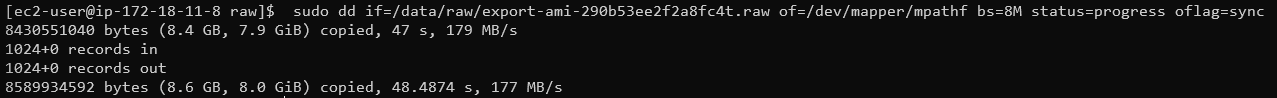 Now that we have the volume connected to our jump host, use dd to write the RAW image we had downloaded previously.